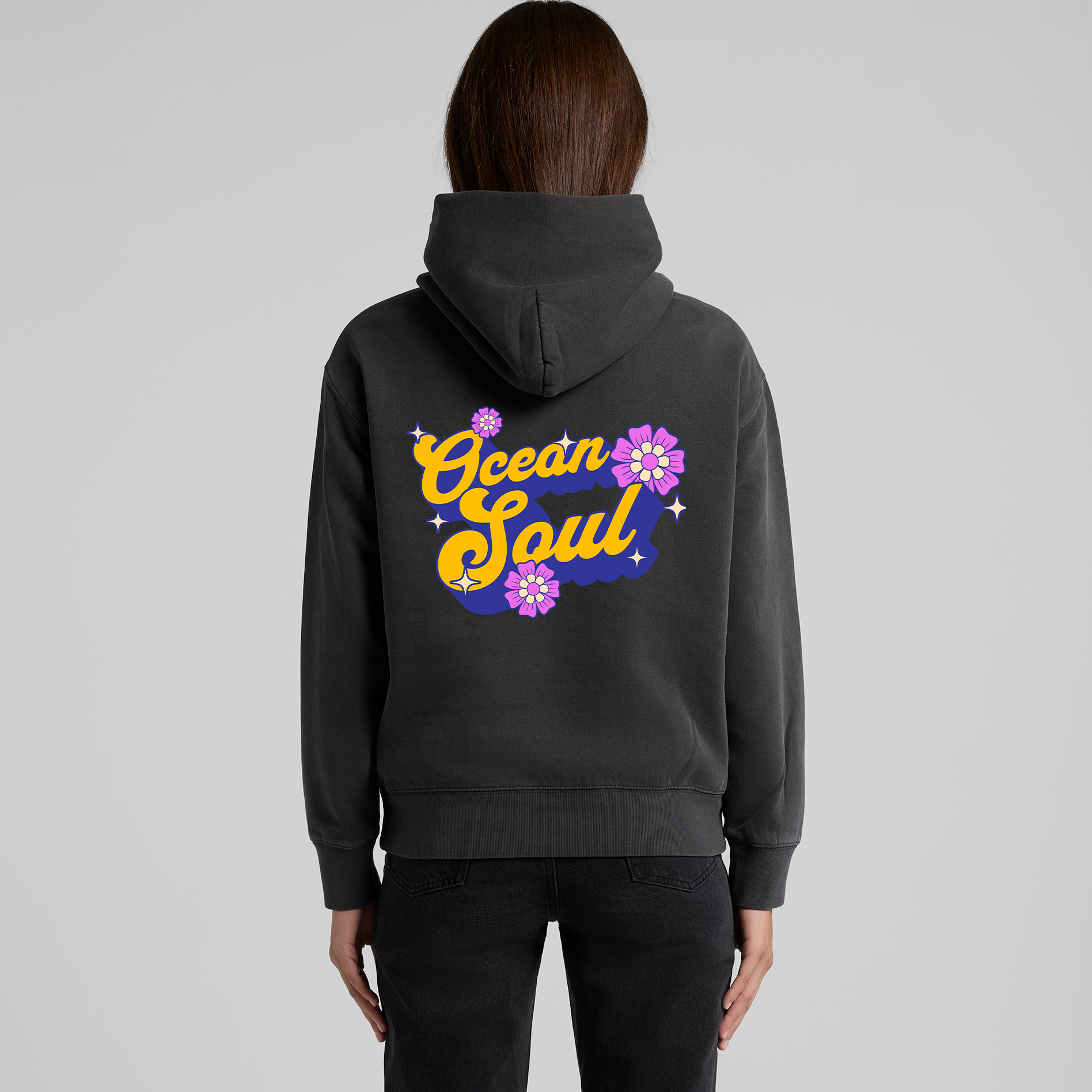Pullover hood, drop shoulder, kangaroo pocket, lined hood, no drawcord, garment dyed, sleeve cuff ribbing